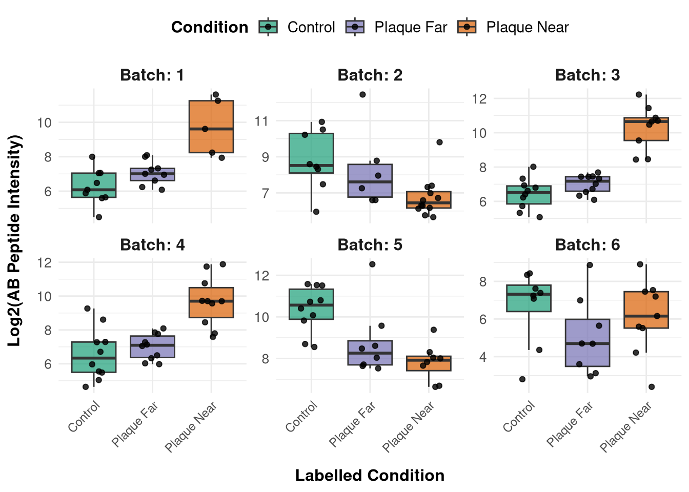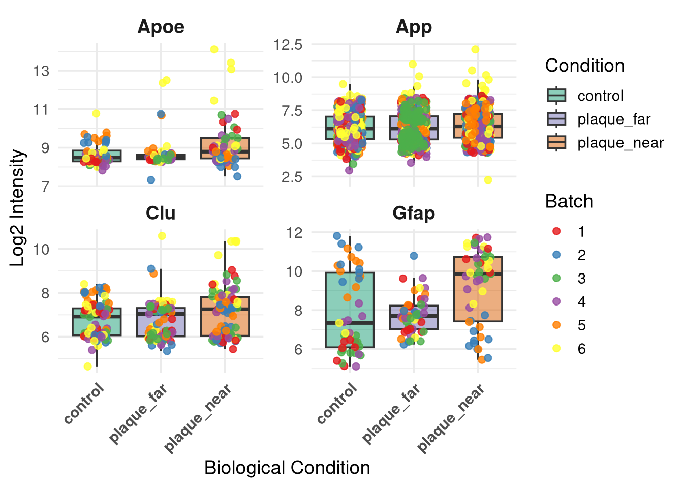 base_dir <-"/nemo/lab/destrooperb/home/shared/zanettc/millie_proteomics"run_num <-"run1"# Pointing to where you saved the clean data, and where to output the plotobjects_dir <-file.path(base_dir, "data", "processed", run_num)results_dir <-file.path(base_dir, "results", run_num)